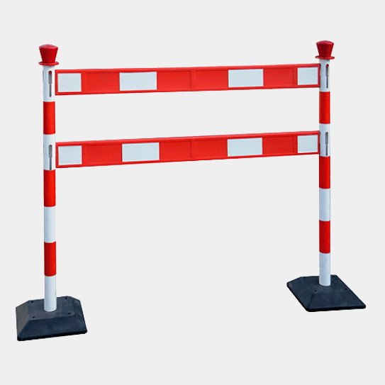 Sistema versatile idoneo per transennare e delimitare aree interne ed esterne, composto da colonnine e barriere vendute in kit. Kit composto da: colonnine bianco/rosse in PVC con base appesantita, altezza 950 mm, Ø 50 mm, peso 6 kg + barre in PVC bianco/rosse mm 1200 x 100 x 20. Grazie all’anello circolare posto sulla sommità è possibile utilizzare le colonnine anche con catene in PVC (codici CP... - vedi pagina a fi anco). Il porta cartello A4 ed il relativo accessorio per il fissaggio sulla colonnina sono fornibili separatamente.